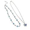 Elegant Blue Crystal Butterfly Necklace Handmade Neckchain Adjustable Length Clavicle Chain Accessory for Everyday Wear