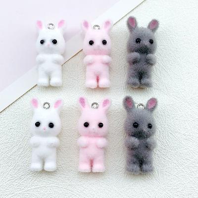 Pack of 5 Cute Rabbit Jewelry Charm Flocking Cartoon Rabbit Pendant Adorable Jewelry Findings for Earrings Keychains