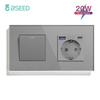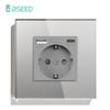 BSEED 1/2/3Gang Mechanical Light Switches 1Way Plus Wall Socket Type-c USB Power Outlets Crystal Glass Frame EU Standard Gray