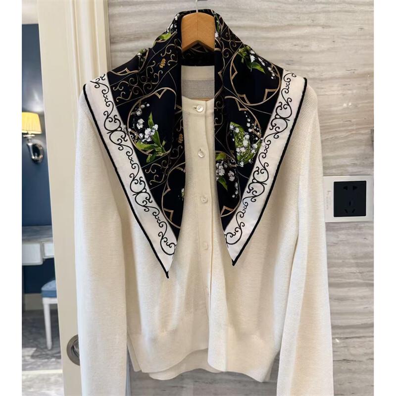 NINA SOLOR Lily of the Valley Vine Lamb Wool Square Scarf