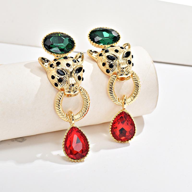 Women'S Vintage Multicolored Crystal Tiger Head Drop Earrings,Versatile High-End Personalized Ear Jewelry,Light Luxury Jewelry G