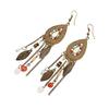 1 Pair Women Girls Oval Leaves Alloy Hook Ear Studs Tassels Beads Long Earrings