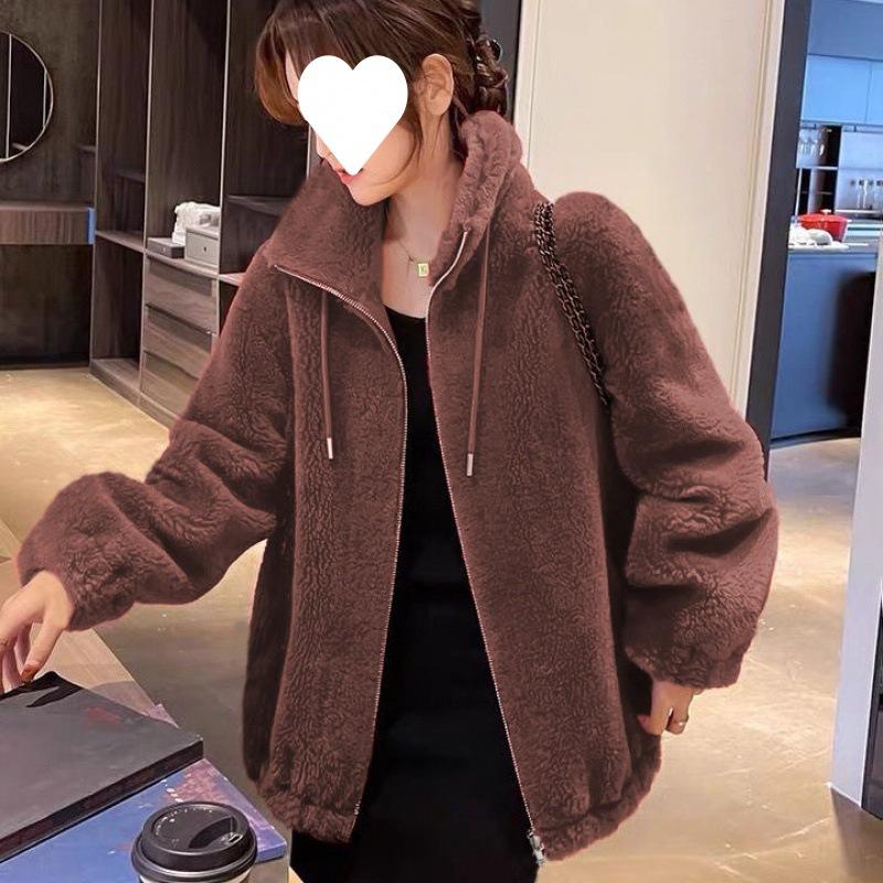 Women's Trendy Winter Coats with Velvet and Thickened Double-sided Velvet Stand-up Collar Warm Sweatshirt for Women Cardigan Zipper Fleece for Women