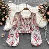 French Sweet Printed Chiffon Shirt for Early Autumn Women, Slim and Slimming, Short Bubble Lantern Sleeve Top for Women