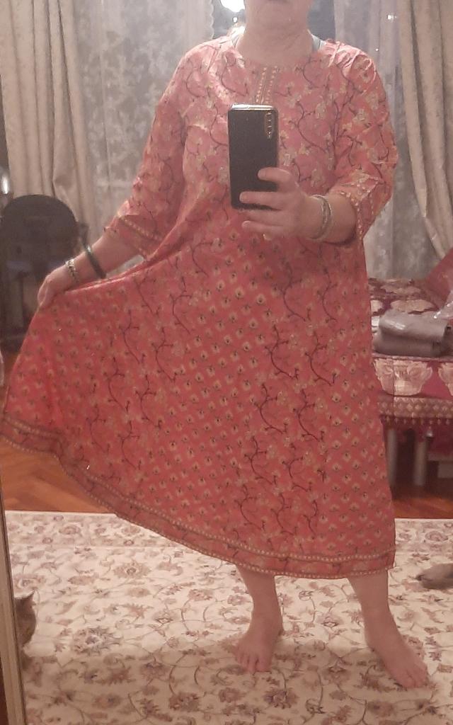 Women Printed Pure Cotton Anarkali Kurta (Multicolor)