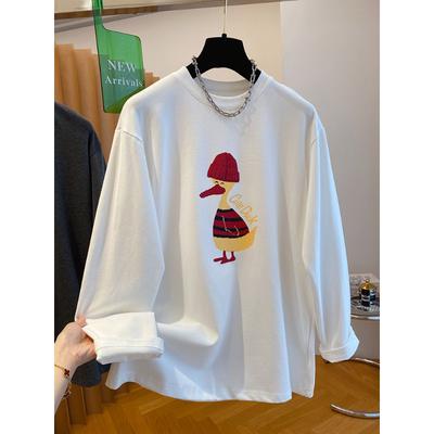 Coolhut2025 Autum Women's Graffiti Cartoon American Simple Drawing Casual Loose Versatile Round Neck Long-Sleeved T-Shirt