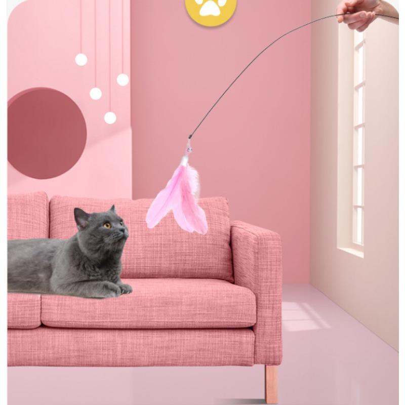 Interactive Cat Toy Handfree Cat Stick Playing Kitten Playing Teaser Wand Toy Suction Cup Bird/Feather Cat Wand Pet Supplies