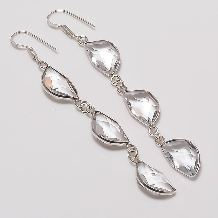 Natural White Topaz Gemstone 925 Sterling Silver Jewelry Earring 3.39" AEE-11238