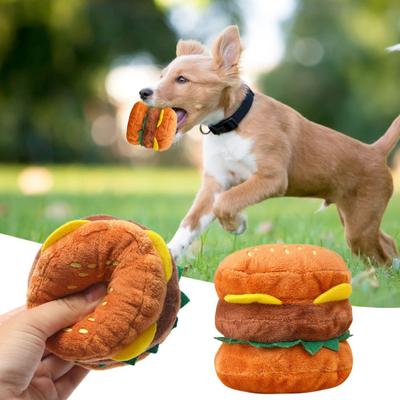 Interactive Plush Dog Toy Simulated Hamburger Built-in Sound Teeth Cleaning Relieve Boredom