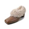 Winter Fluffy Shoes Women's Inner Height Increase Versatile Square Head Plush Warm Single Shoes Women