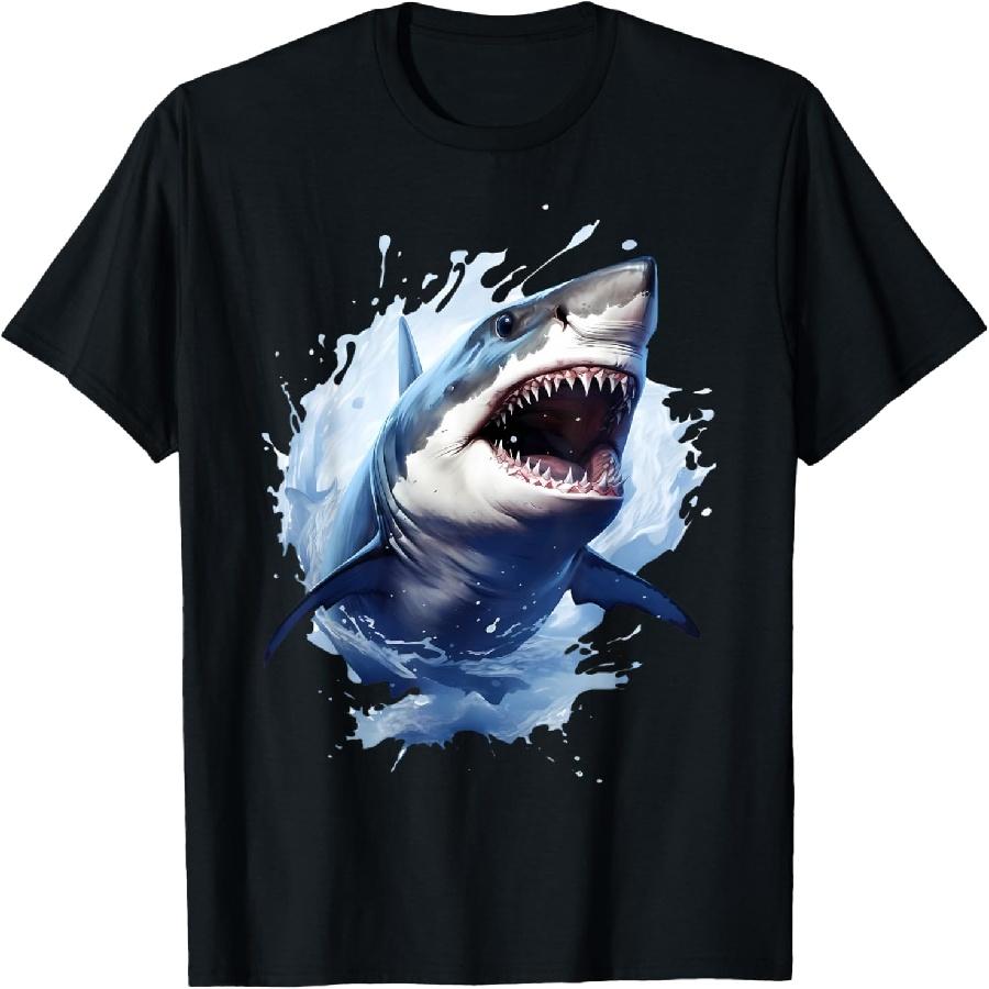 Great White Shark Open Mouth Teeth Beach Ocean Animal T-Shirt(1)