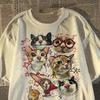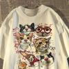 2026 New Street Art Cartoon Cat Collection Printed Plus Size Mens and Womens Cotton Short Sleeve Loose Crew Neck TShirts