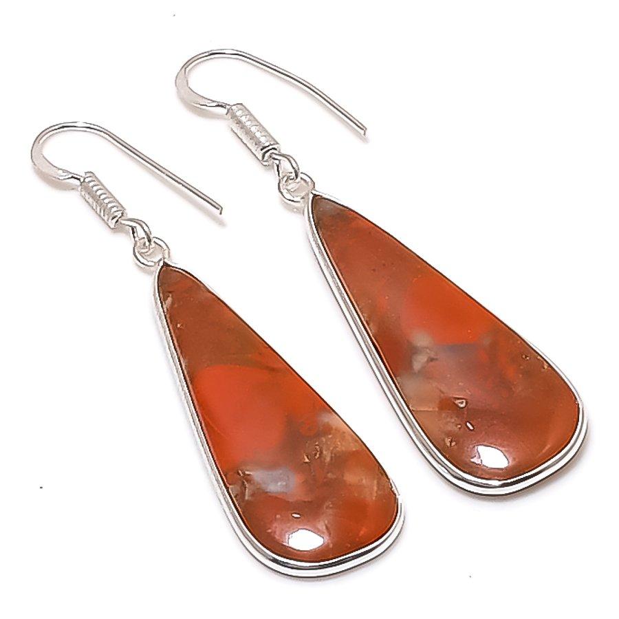 Natural Red Snakeskin Gemstone Handmade 925 Sterling Silver Earring 2.17" AE-11546