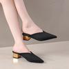 Summer Autumn Popular Woman Fashion Pointed Toe Knitted Elastic Retro Wrap Head Half Slippers Versatile Thick Heel Cool Slippers