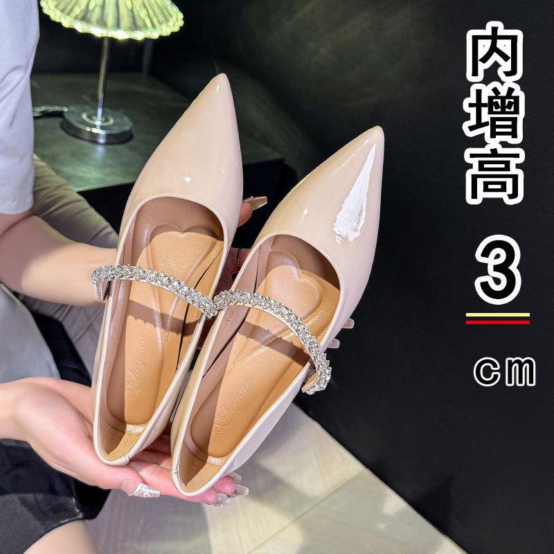 Rhinestone Pearl Word with Mary Jane Shoes Pointed Head Shallow Mouth Flat Shoes Inner Height Increase Single Shoes