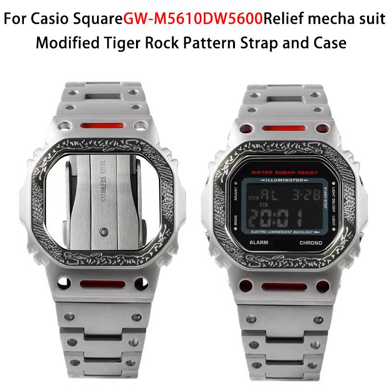 For Casio Small Square GW-M5610DW5600 Series Modified Tiger Rock Pattern Relief Mech Metal Case Strap Watch Trendy Accessories