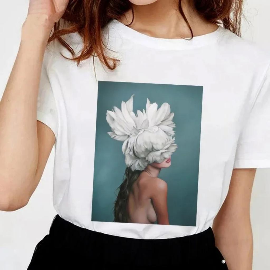 Abstract Beautiful Flower Streetwear Fashion Girls T-Shirts Harajuku Clothes Short Sleeve Summer Tee Casual Female O-Neck Tops