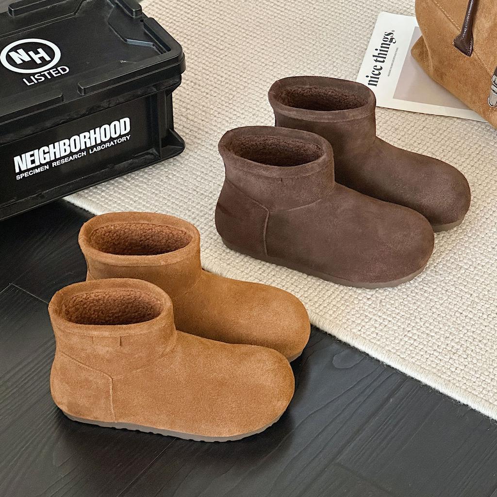 Retro Velvet Snow Boots Women's Winter New Fashion Versatile Matte Leather Cotton Boots Cold-proof and Warm Short Boots Women