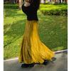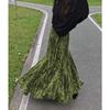 Retro Chinese Women's Fishtail Skirt - Green Velvet, Long Hem, Spring/Autumn/Winter