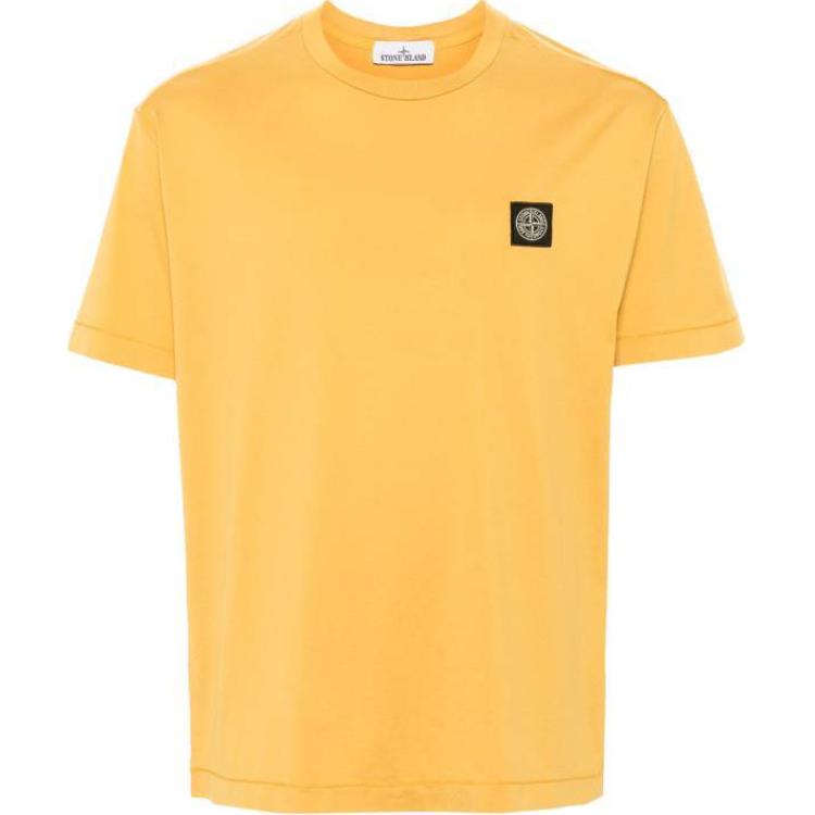 STONE ISLAND Logo Round Neck Short Sleeve T-Shirt Men Tops Yellow 811524113-V0034
