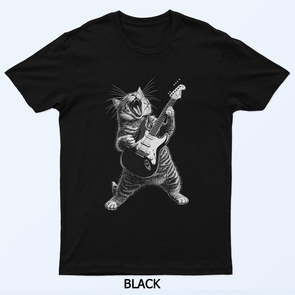 Cat Kitten Playing Guitar Rock On Star Funny Rock And Roll T-Shirt