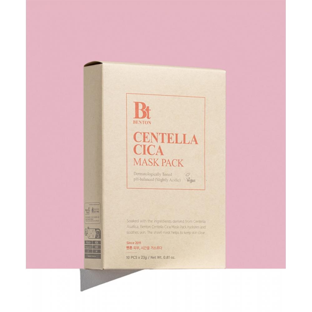 BENTON Centella Cica Mask Pack 23g x 10 Sheets is a low-irritation sheet mask suitable for sensitive and problematic skin, containing Centella Cica extract and hyaluronic acid that help soothe the skin and provide concentrated hydration. This product effectively mitigates irritations and nourishes the skin.