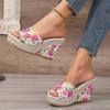 2026 New Women Shoes Fashion Shoes Casual Flip Flops Summer Bohemia Vintage Floral Print Peep Toe Wedge Slippers