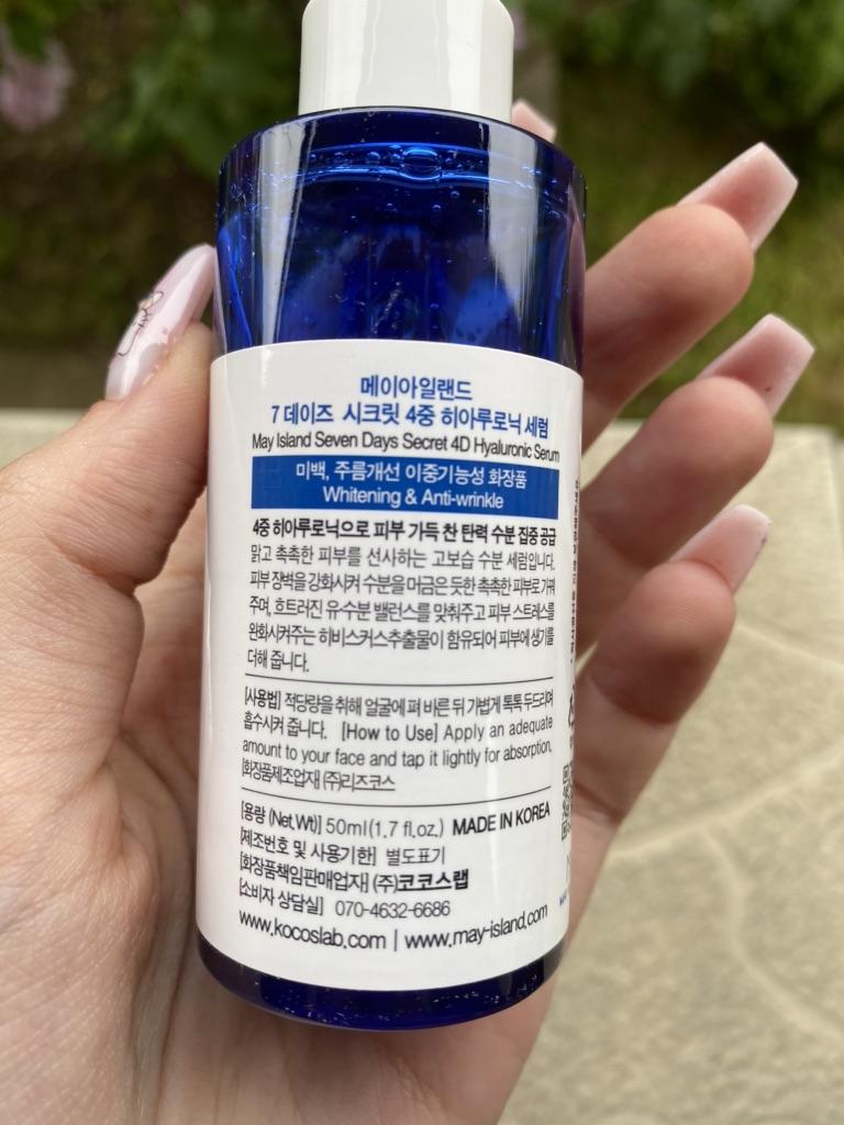 Sisaldab neljakordset hüaluroonkomponenti koos sisalduva neljakordse hüaluroonainega naha tervise säilitamiseks, väga niisutav seerum muudab naha niiskeks.
