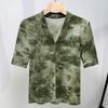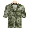 Flocking Mesh Base Shirt for Women New Women's Temperament Half-high Neck Printed T-shirt Perspective Top
