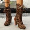 Winter High-Heel Lace Women's Leather Boots Fashionable Sharp Head Shape Velvet Boot Tube Material PU Leather Cat Pattern