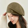 Women's Autumn and Winter Warm Elegant Wool Beret Fashion Versatile Knitted Japanese Artist Hat Cold Resistant British Style Hat