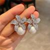 S925 Silver Needle Lily Earrings: Luxurious Pearls & Sparkling Diamonds for Women.