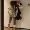 Inverno Elegante Fodera Pelliccia Cappotto Largo Donna Y2k Colletto in Pelliccia Cappuccio Spesso Moda Parka Capispalla Casual Giubbotti Imbottiti in Cotone