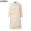 VONDA Women Casual Turn Down Collar Long Sleeve Front Cross Shirt Dress
