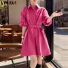 VONDA Women Elegant Casual Scoop Neck 3/4 Sleeve Long A-line Dress