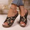 Fashion Fashion Leopard Wedges Sandals Women Shiny Crystal Thick Sole Non Slip Slippers Plus Size Comfort Chunky Platform Beach Shoes
