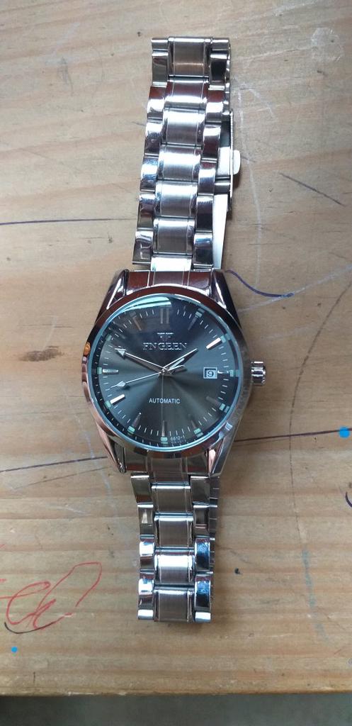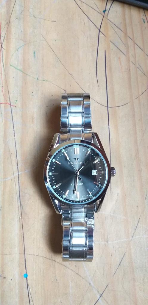 Klokken min ankom Jeg likte denne modellen. De vil vare lenge Jeg anbefaler denne modellen på det sterkeste. Bestillingen kom til Mexico på dørstokken min. Jeg har hatt denne klokken i 2 uker. Hvis jeg slutter å bruke den for en dag, stiller jeg bare inn dato og klokkeslett og spoler den litt manuelt for å starte driften, og den fungerer uten problemer. Instruksjonene indikerer at den er nedsenkbar, men den testen har jeg ikke utført. Det er en god klokke som jeg ikke vil mislykkes. For prisen anser jeg den som godt servert, så lenge den har god finish og er punktlig... Den fungerer fortsatt korrekt 8. oktober 2019. Takk, Dream Wristwatches.