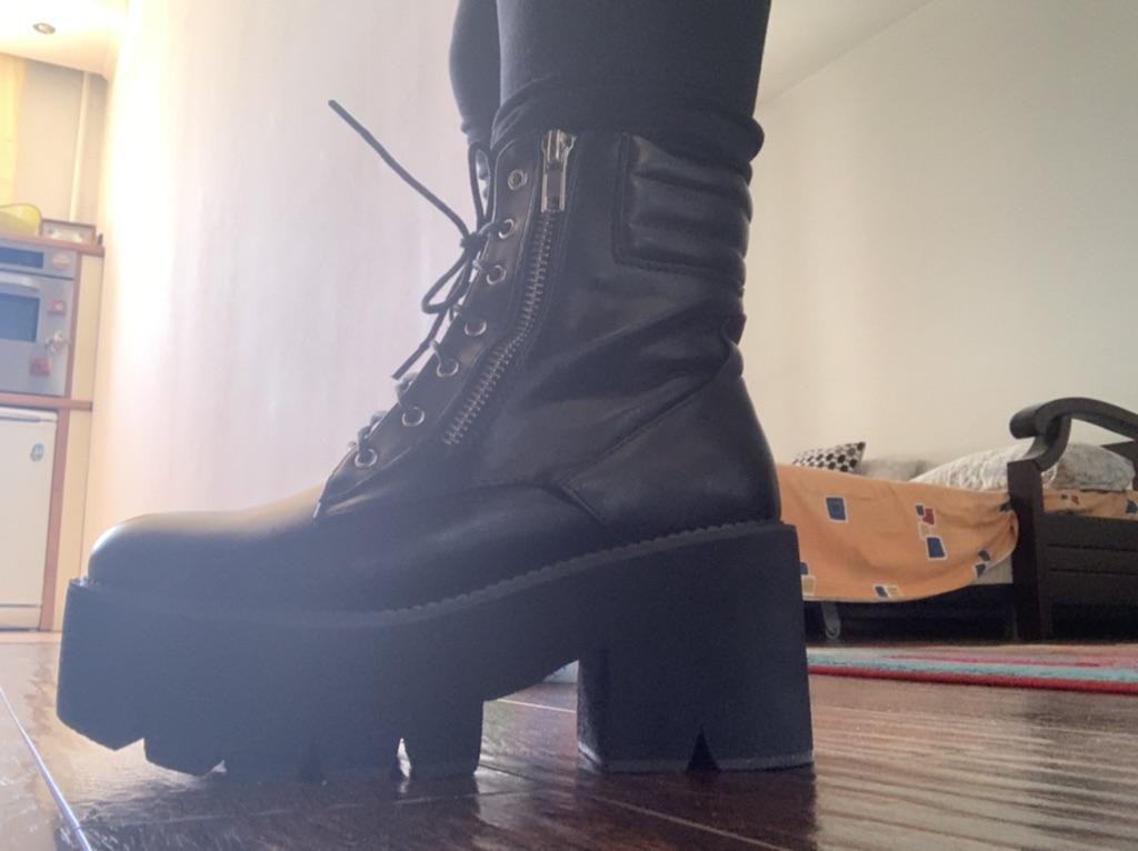 Høst ankelstøvler Dame Motorsykkelstøvler Chunky hæler Uformell snøring Rund tå Plattformstøvler Sko