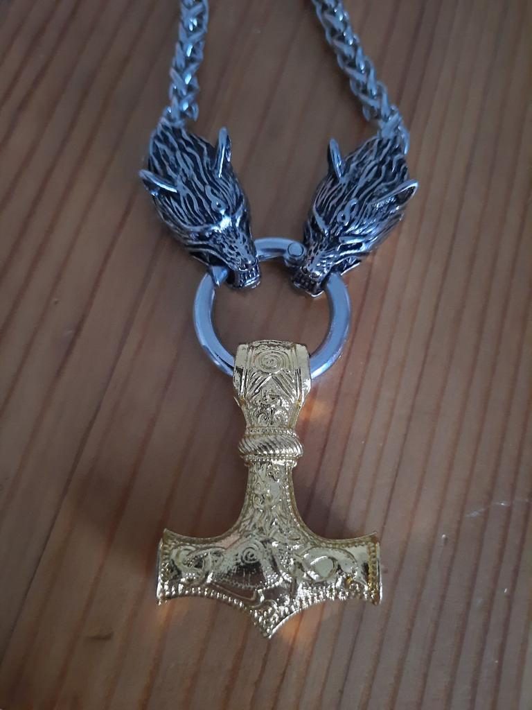 Menn Wolf Head Norse Viking Amulet Thor Hammer Anheng Halskjede