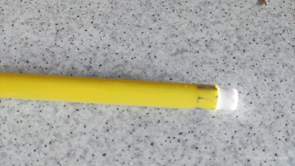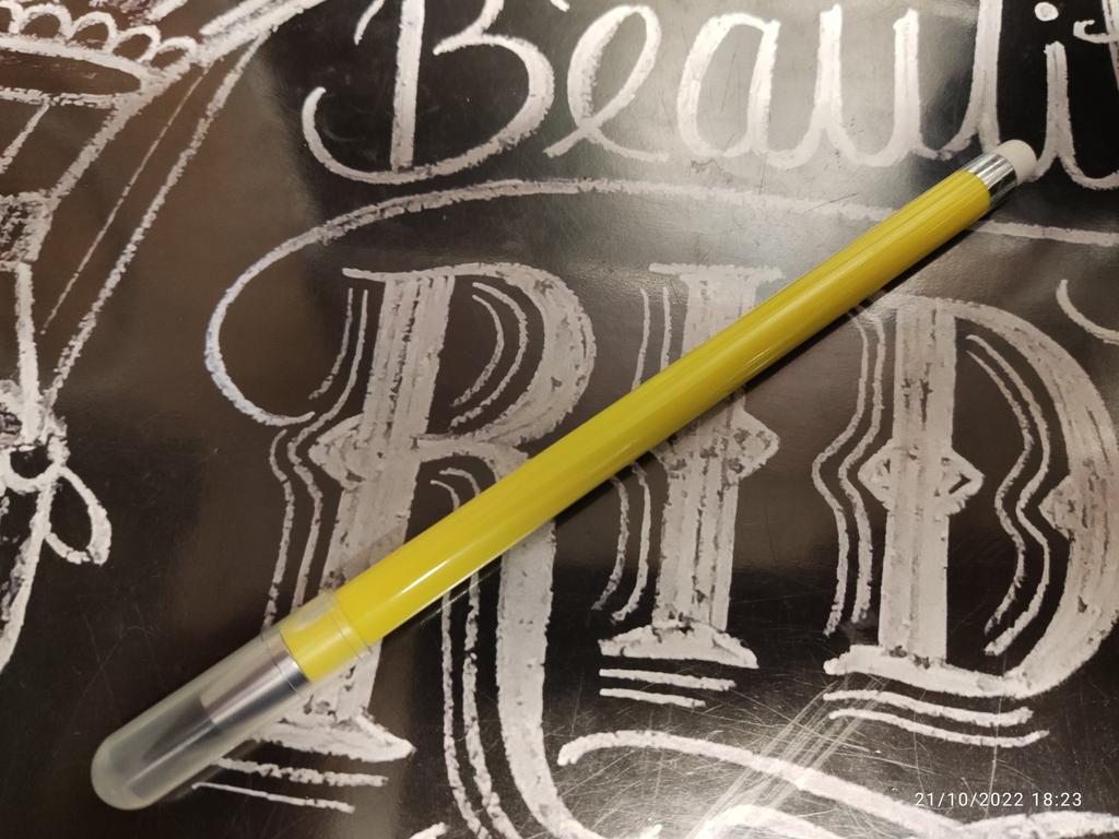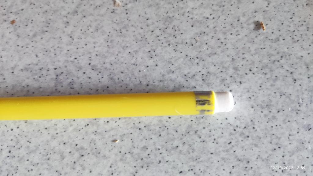 Blyanten er veldig interessant, jeg vet ikke hvor mye den vil skrive, men det er noe spesielt bare at viskelæret på spissen ikke er fikset. Det må limes.