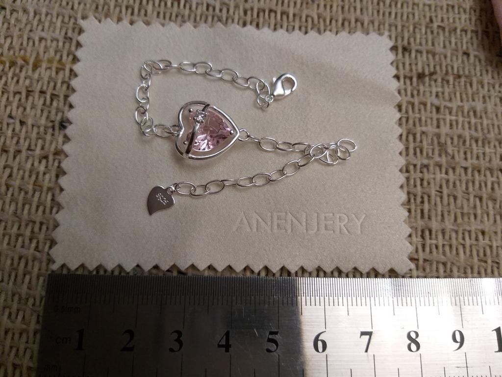 ANENJERY Delicate Pink Zircon Heart Bracelet for Women Trendy Link Chain Bracelet Jewelry