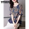 Sommer Kvinner Print Spleis Uformell Chiffon Bluser Skjorter O-hals Mote Løse topper Blusas Large Str.