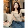 Pullovers Style Sweet Girl Lace Panel Long-sleeved Sweater Autumn/Winter Square Collar Slim Fit Bottom Knitted Pullover