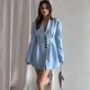 Fashion Loose Solid Color Skirts Sets For Women 2025 Spring Elegant Long Sleeve Single Button Blazer With High Waist Pleated Mini Skirt 2 Pieces Set