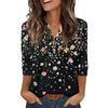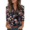 Ladies' Fashionable And Casual Floral Printed Three-quarter Sleeve Loose V-neck Button Shirt