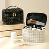 [Stylish Makeup Bag] Large Plaid Makeup Bag | Multi-Functional Travel Organizer with Rayon Lining, Polyester Material,Perfect Gift for Girlfriend,Wife