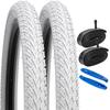 The product includes 2 x 700x38c bicycle tires, 2 x bicycle tubes, 2 x bicycle rim tapes, and 2 x tire levers.