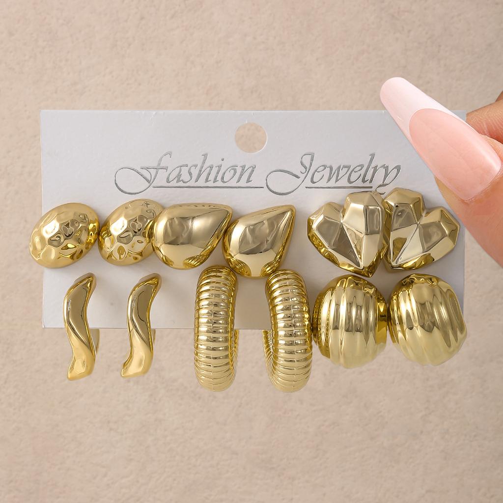 Trebdy Geometric C-shaped Earrings Set Elegant Heart-shaped Teardrop Shaped Stud Earrings Women's Daily Date Party Zircon Gifts