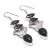 Natural Black Onyx, Amethyst 925 Sterling Silver Jewelry Earring 2.56"
