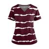 Women's Fashionable Printed V Neck Double Pocket Short Sleeved Shirt With Slit Hem Uniform And Worker Top